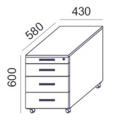 négyfiókos görgős konténer