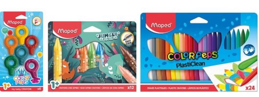 „Color`Peps Baby” zsírkréták megkönnyítik az első rajzok elkészítését, és játékra csalogatnak, így már egészen apró kortól ajánljuk. Az eggyel nagyobb korosztály számára tervezett „Jungle Fever” kollekció zsírkrétái fejlesztik a kreativitást és a képzelőerőt. Vidám mintájú papírbevonata gondoskodik a kezek tisztántartásáról. A nagyobbak számára ideális a 24 varázslatos színben elérhető „Color`Peps PlastiClean” zsírkréta, amely lapos végének köszönhetően satírozásra alkalmas.