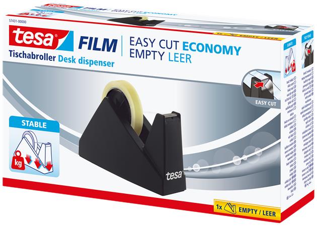 tesa® Easy Cut Economy asztali csomagolószalag vagy ragasztószalag adagoló ötvözi a klasszikus kialakítást és a bevált funkcionalitást