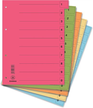 KezdőlapIrodaszerekIratrendezés, archiválásElválasztólapokRegiszter, karton, A4, mikroperforált, DONAU, vegyes színek
