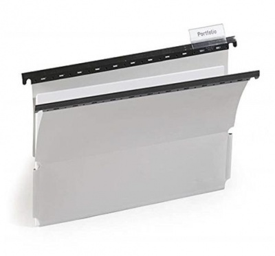 Függőmappa integrált műanyag sínnel, lyukasztás nélküli dokumentumok tárolásához.