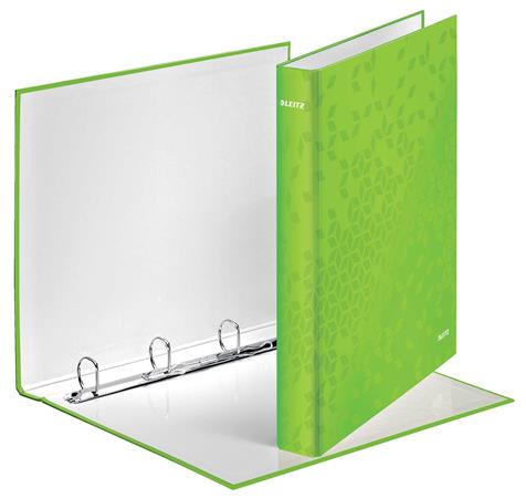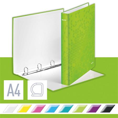 Gyűrűs könyv, 4 gyűrű, D alakú, 40 mm, A4 Maxi, karton, LEITZ "Wow", zöld