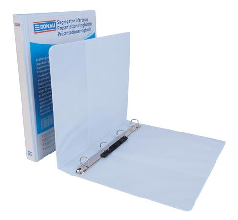 Gyűrűs könyv, panorámás, 4 gyűrű, D alakú, 44 mm, A4, PP, DONAU, fehér