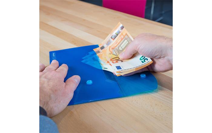 Az ECO Recycled DL patentos tasak praktikus és környezetbarát megoldás kisebb dokumentumok, jegyzetek és iratok tárolására.