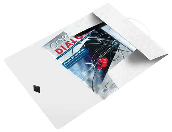 - tetszetős gumiszalagos záródás a dokumentumok biztonságos szállításához