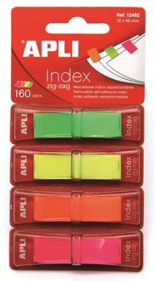 Jelölőcímke, "Z", műanyag, 4x40 lap, 12x45 mm, APLI, 4 fluoreszkáló szín