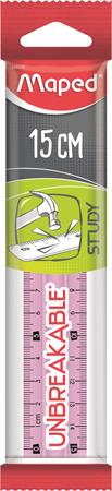 Vonalzó, műanyag, törhetetlen, 15 cm, MAPED "Study Unbreakable", vegyes színek