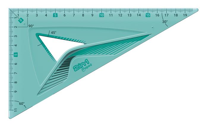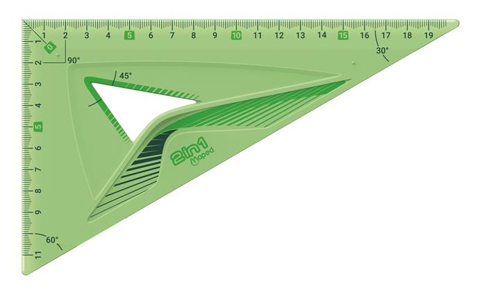 - 1 db 2 in 1 vonalzó: 60° es 45°-os szögmérő