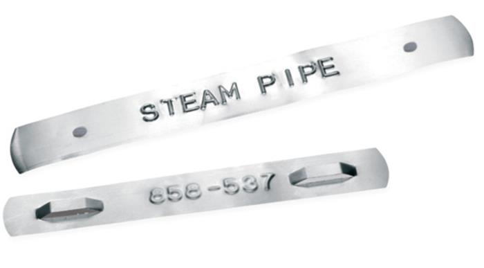 rozsdamentes acél és alumínium címkék dombornyomását végzi, melyek