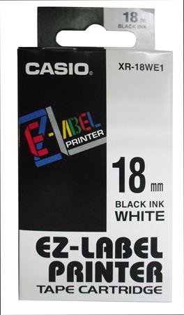 Feliratozógép szalag, 18 mm x 8 m, CASIO, fehér-fekete