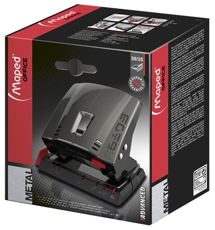 Lyukasztó, kétlyukú, 35 lap, fém, MAPED "Advanced", sötétbarna