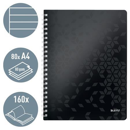 Spirálfüzet, A4, vonalas, 80 lap, LEITZ "Wow", fekete