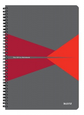 Spirálfüzet, A4, vonalas, 90 lap, PP borító, LEITZ "Office", szürke-piros