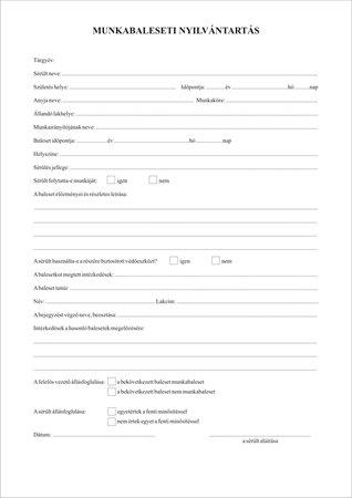 Nyomtatvány, munkabaleseti nyilvántartó napló, 32 oldal, A4, VICTORIA PAPER, 10 tömb/csomagAlapítvány támogatás 3 Ft