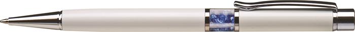 Golyóstoll, fehér, középen zafírkék SWAROVSKI® kristállyal töltve, 14cm, ART CRYSTELLA®