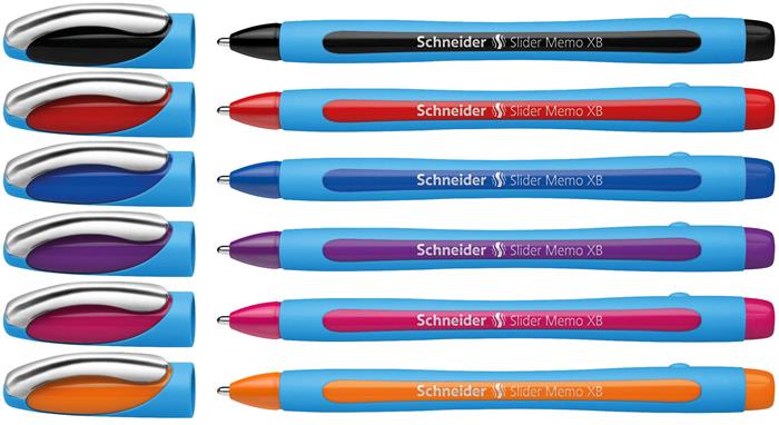 Golyóstoll készlet, 0,7 mm, kupakos, SCHNEIDER "Slider Memo XB", vegyes színek