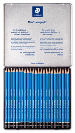Grafitceruza készlet, fém doboz, hatszögletű, STAEDTLER "Mars® Lumograph® 100", 24 különböző keménység