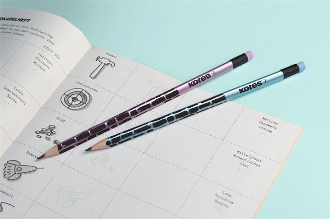 KezdőlapIrodaszerekÍrószerekGrafit- és színes ceruzákGrafitceruza radírral, HB, háromszögletű, KORES "Style Cracked", vegyes metál színek