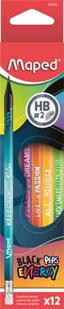 Grafitceruza radírral, HB, háromszögletű, MAPED "Black`Peps Energy", 6 különböző minta