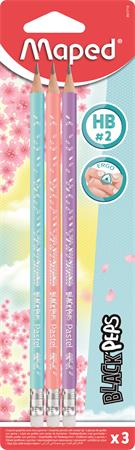 Grafitceruza radírral, HB, háromszögletű, MAPED "Black`Peps Pastel", vegyes pasztell színek