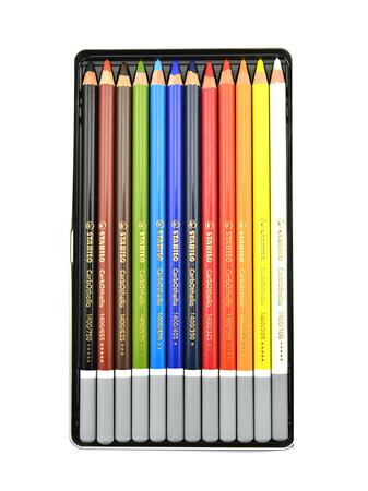 Pasztell ceruza készlet, kerek, fém doboz, STABILO "CarbOthello", 12 különböző szín