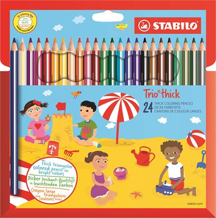 Színes ceruza készlet, vastag, háromszögletű, hegyezővel, STABILO "Trio thick", 24 különböző szín
