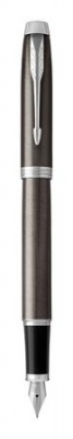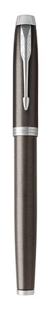 Töltőtoll, ezüst színű klip, sötétbarna tolltest, PARKER "Royal IM"
