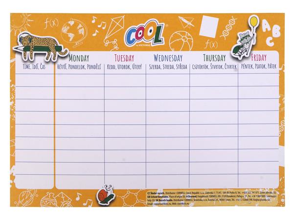 KezdőlapIrodaszerekIskolaszerekEgyéb iskolaszerekÓrarend, A5, kétoldalas, COOL BY VICTORIA
