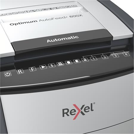 Iratmegsemmisítő, konfetti, 600 lap, REXEL, "Optimum AutoFeed+ 600X"