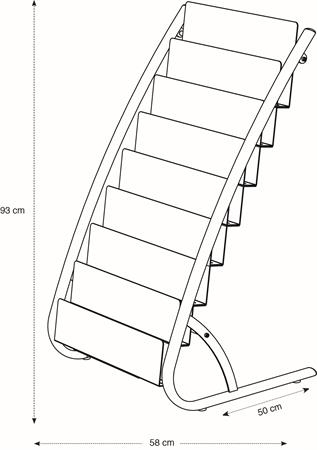 Skandináv stílus, letisztult dizájn fa és acél anyagok kombinációjával. Ideális kiegészítő magazinok vagy prospektusok kihelyezéséhez például a recepción.