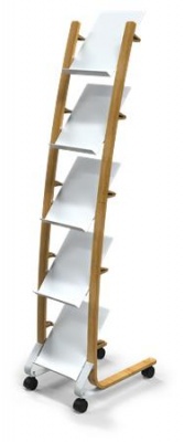 Katalógustartó, mobil, 5 rekeszes, ALBA, fa/fehér