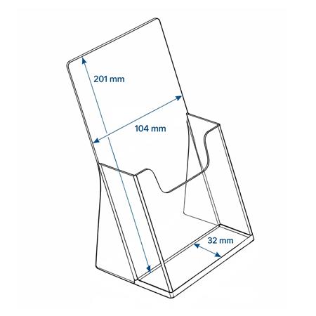 Az 1/3 A4 (DL) méretű asztali szórólaptartó elegáns és praktikus megoldás prospektusok, menük vagy termékleírások kihelyezésére.