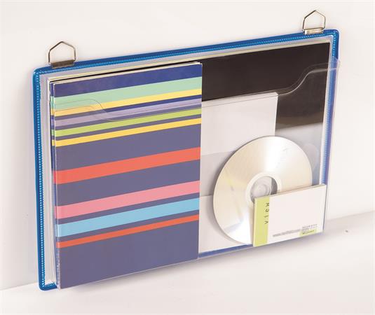 Prospektustartó fém tartófüllel, függő, A4, fekvő, DJOIS, kék