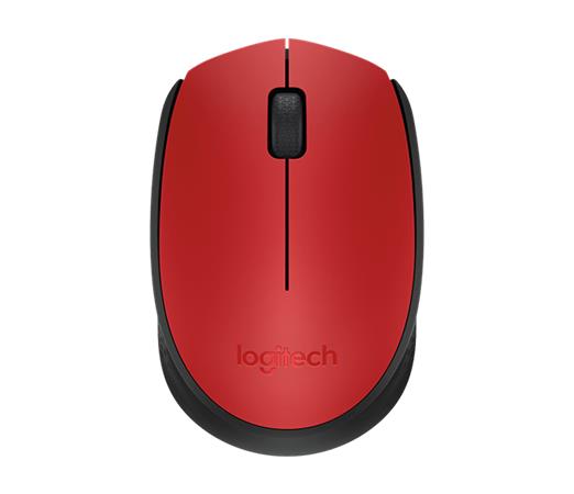 Egér, vezeték nélküli, optikai, közepes méret, USB, LOGITECH "M171", piros