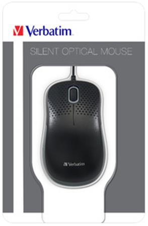 Egér, vezetékes, optikai, normál méret, USB, VERBATIM "Silent", fekete