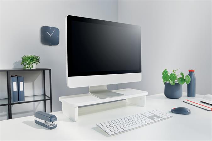 A Leitz Ergo monitorállvány megemeli a monitor képernyőjét, ezáltal kényelmesebb betekintési szöget biztosít és javítja a testtartást.