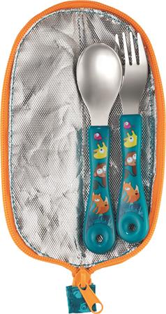 Evőeszközkészlet textil tartóban: villa és kanál