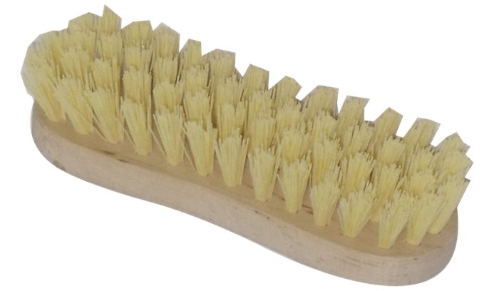 Piskóta alakú súrolókefe, fa test, műanyag szál