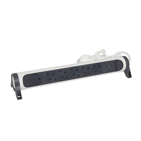 Elosztósor, túlfeszültség levezetővel, 6 csatlakozóaljzat, 1,5 m, LEGRAND "Premium", fehér-fekete
