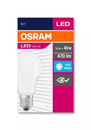 LED izzó, E27, gömb, A60, 5W, 470lm, 4000K (HF), OSRAM "Value"