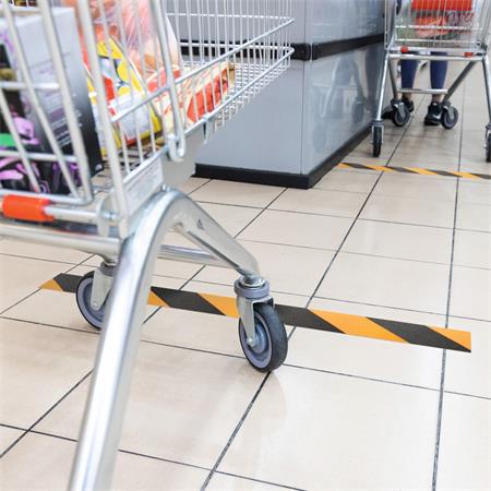 Öntapadó padlójelölő szalag, beltéri területek átmeneti kijelölésére.